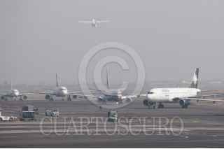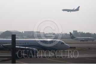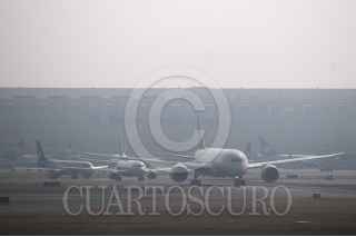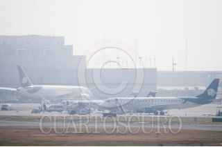 MÉXICO, D.F., 02ENERO2016.- En la zona del aeropuerto capitalino y el circuito interior se aprecia la contaminación que se ha registrado desde los últimos días. La Dirección de Monitoreo Atmosférico informó que la calidad del aire en el Valle de México es mala al presentar como máximo 136 puntos de ozono en la zona suroeste y 117 puntos de partículas suspendidas en la región noreste, en el Índice Metropolitano de la Calidad del Aire (Imeca). FOTO: DIEGO SIMÓN SÁNCHEZ /CUARTOSCURO.COM