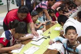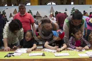 MÉXICO, D.F., 02ENERO2016.- Cientos de padres de familia acuden con sus pequeñines al Palacio Postal para escribirle su carta a los Reyes Magos, en donde trabajadores del servicio postal les explican como escribir una carta y cuales son los pasos para que llegue a su destino correcto, también aprovechan para tomarse su foto con los tres monarcas del medio oriente. FOTO: MOISÉS PABLO /CUARTOSCURO.COM