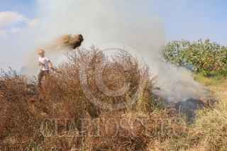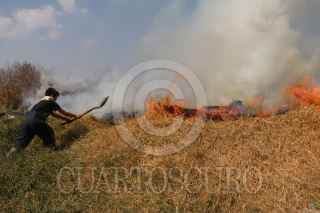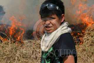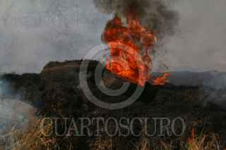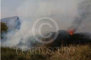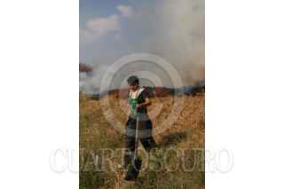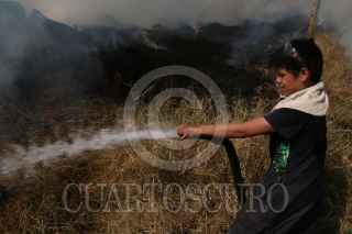 ECATEPEC, ESTADO DE MÉXICO., 02ENERO2016.- Bomberos de Ecatepec, sofocaron un incendio de pasto seco frente a la plaza comercial de las Americas. Uno de los bomberos que sofocaron las llamas fue un niño de trece años llamado Edgar que acompaño a los vulcanos como voluntario. FOTO: SAÚL LÓPEZ /CUARTOSCURO.COM