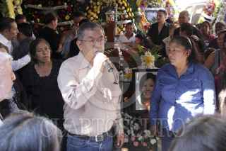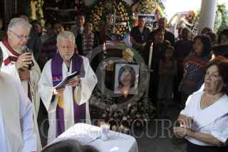 TEMIXCO, MORELOS, 03ENERO2016.- El obispo de Cuernavaca Ramón Castro Castro ofreció una misa de cuerpo presente en la casa de Gisela Mota Ocampo, asesinada el día de ayer en su domicilio por un comando armado. Familiares, amigos y vecinos llevaron flores y coronas fúnebres al lugar. FOTO: PATRICIA MORALES / CUARTOSCURO.COM