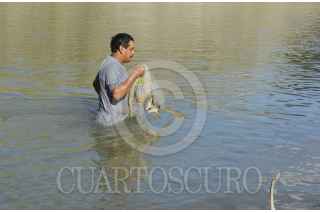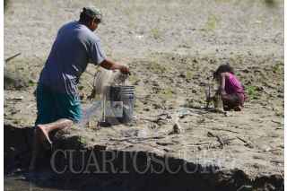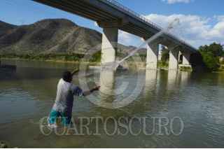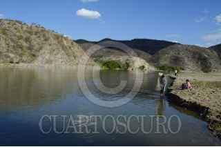 MEZCALA, GUERRERO, 03ENERO2016.- Un hombre de la población de Mezcala pesca en el río mientras su pequeña hija juega en la arena. FOTO: JOSÉ I.HERNÁNDEZ /CUARTOSCURO.COM