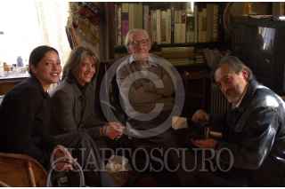 Manuel Alvarez Bravo en su casa de Coyoacán, acompañado de Fabiola Garduño, Adriana Malvido y Saul Serrano. Foto: Pedro Valtierra/Cuartoscuro