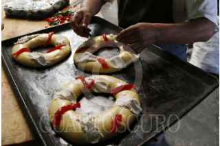 OAXACA, OAXACA, 05ENERO2016.- Cientos de miles de roscas se ofertan en todo el país como parte de los festejos del día de Reyes el cual se lleva a cabo este 6 de enero. Para el panadero Pedro Jiménez quien lleva más de 30 años elaborando pan, la preparación de estos productos es más laboriosa debido a la gran demanda que tienen las roscas, ya que él prepara más de 100 roscas al día en sus diversas presentaciones. FOTO: ARTURO PÉREZ ALFONSO /CUARTOSCURO.COM