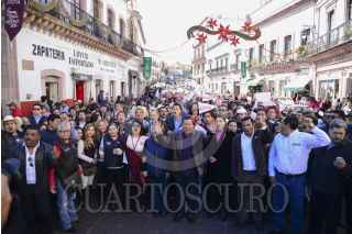 ZACATECAS, ZACATECAS, 06ENERO2016.- La mañana de lunes, el senador David Moreal Ávila, junto a simpatizantes marchó por las principales calles de la ciudad como forma de apoyo a su candidatura a la gubernatura del estado por el partido Morena. FOTO: EDGAR CHÁVEZ /CUARTOSCURO.COM