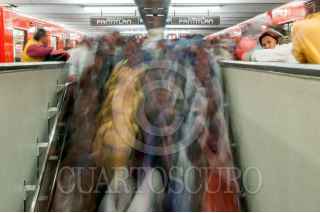 MÉXICO, D.F., 06ENERO2016.- Tránsito humano en unas escaleras del metro Pantitlán de la línea café, durante la "hora pico", cuando miles de estudiantes y empleados regresan a sus casas luego de una jornada laboral. FOTO: DIEGO SIMÓN SÁNCHEZ /CUARTOSCURO.COM