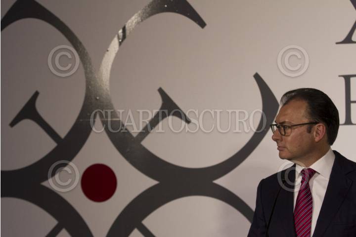 MÉXICO, D.F., 07ENERO2016.- Luis Videgaray Caso, secretario de Hacienda y Crédito Publico, participó en la XXVII Reunión de Embajadores y Cónsules 2016, que se llevó a cabo en la sede de la cancillería, en la que destacó que no se cobrarán más impuestos y que la depreciación del Yuan chino es un alerta para las economías globales. FOTO: MOISÉS PABLO /CUARTOSCURO.COM