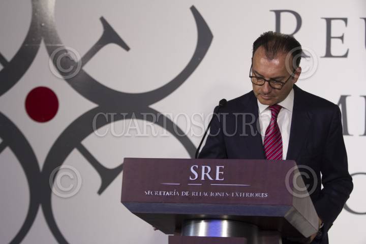 MÉXICO, D.F., 07ENERO2016.- Luis Videgaray Caso, secretario de Hacienda y Crédito Publico, participó en la XXVII Reunión de Embajadores y Cónsules 2016, que se llevó a cabo en la sede de la cancillería, en la que destacó que no se cobrarán más impuestos y que la depreciación del Yuan chino es un alerta para las economías globales. FOTO: MOISÉS PABLO /CUARTOSCURO.COM