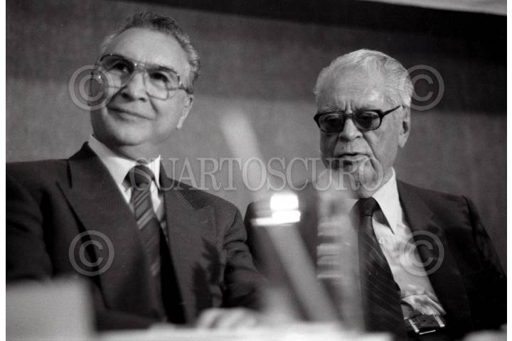 MÉXICO, D.F., 07ENERO2016.- Joaquín Gamboa Pascoe, líder de la Confederación de Trabajadores de México, perdió la vida la tarde de hoy a sus noventa y tres años de edad. En la imagen con su antecesor en el cargo como secretario general de la CTM, Leonardo Rodríguez Alcaine, un 02 de agosto de 1990. FOTO: TOMAS MARTÍNEZ /ARCHIVO/CUARTOSCURO.COM