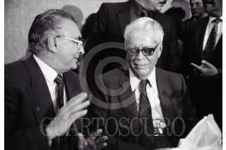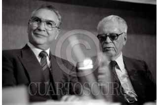 MÉXICO, D.F., 07ENERO2016.- Joaquín Gamboa Pascoe, líder de la Confederación de Trabajadores de México, perdió la vida la tarde de hoy a sus noventa y tres años de edad. En la imagen con su antecesor en el cargo como secretario general de la CTM, Leonardo Rodríguez Alcaine, un 02 de agosto de 1990. FOTO: TOMAS MARTÍNEZ /ARCHIVO/CUARTOSCURO.COM
