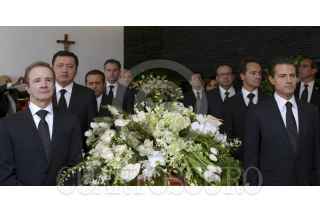 MÉXICO, D.F., 08ENERO2016.- El Presidente Enrique Peña Nieto encabezó una guardia de honor ante el féretro de Joaquín Gamboa Pascoe. Estuvo acompañado por Miguel Ángel Osorio Chong, Secretario de Gobernación; Aurelio Nuño Mayer, Secretario de Educación Pública; Alfonso Navarrete Prida, Secretario del Trabajo y Previsión Social; Rosario Robles Berlanga, Secretaria de Desarrollo Agrario, Territorial y Urbano; Ildefonso Guajardo Villarreal, Secretario de Economía, y José Antonio González Anaya, Director General del Instituto Mexicano del Seguro Social, así como por Joaquín, Armando y Alejandro Gamboa Enríquez, hijos del fallecido dirigente obrero. FOTO: PRESIDENCIA /CUARTOSCURO.COM