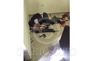 LOS MOCHIS, SINALOA, 08ENERO2016.- Presuntos miembros del grupo de seguridad del Joaquín Guzmán Loera "El Chapo", quienes murieron tras el enfrentamiento con elementos de la Armada de México, y en donde fuera capturado el capo sinaloense. FOTO: ESPECIAL /CUARTOSCURO.COM