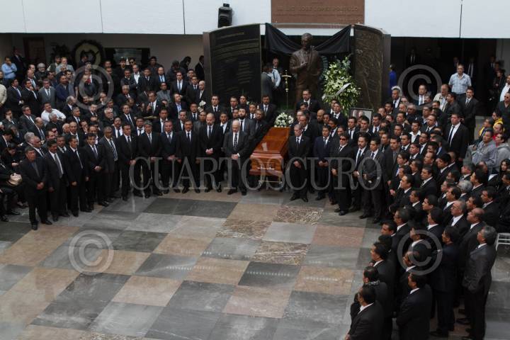 MÉXICO, D.F., 08ENERO2016.- Carlos Aceves del Olmo, es quien asumirá el cargo de secretario general de la CTM, tras la muerte de su líder Joaquín Gamboa Pascoe, encabezó la primera guardia durante el homenaje de cuerpo presente que se realizó el líder cetemista en la sede de la Confederación de Trabajadores de México. FOTO: MOISÉS PABLO /CUARTOSCURO.COM