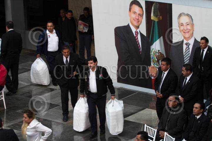 MÉXICO, D.F., 08ENERO2016.- Carlos Aceves del Olmo, es quien asumirá el cargo de secretario general de la CTM, tras la muerte de su líder Joaquín Gamboa Pascoe, encabezó la primera guardia durante el homenaje de cuerpo presente que se realizó el líder cetemista en la sede de la Confederación de Trabajadores de México. FOTO: MOISÉS PABLO /CUARTOSCURO.COM