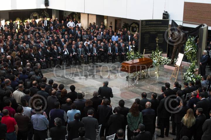 MÉXICO, D.F., 08ENERO2016.- Carlos Aceves del Olmo, es quien asumirá el cargo de secretario general de la CTM, tras la muerte de su líder Joaquín Gamboa Pascoe, encabezó la primera guardia durante el homenaje de cuerpo presente que se realizó el líder cetemista en la sede de la Confederación de Trabajadores de México. FOTO: MOISÉS PABLO /CUARTOSCURO.COM