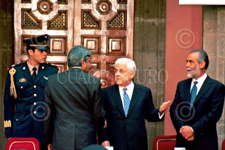 Fernando Canales Clariond Y Jorge G. Castañeda después de la conmemoración del 85 aniversario de la promulgación de la Constitución Mexicana. FOTO: Susana Navarrete/CUARTOSCURO.COM