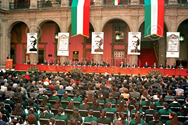 Fernando Canales Clariond Y Jorge G. Castañeda después de la conmemoración del 85 aniversario de la promulgación de la Constitución Mexicana. FOTO: Susana Navarrete/CUARTOSCURO.COM