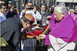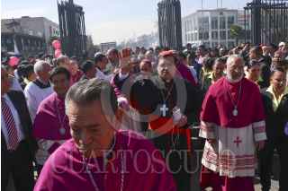 MÉXICO, D.F., 09ENERO2016.- Norberto Rivera Carrera, Arzobispo Primado de México, encabezó la peregrinación anual de la arquidiócesis de México que partió de la glorieta de Peralvillo hacia la Basílica de Guadalupe donde oficiaron una misa y pidió a los feligreses prepararse para la visita del Papa Francisco. FOTO: SAÚL LÓPEZ /CUARTOSCURO.COM