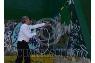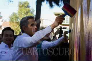MÉXICO, D.F., 09ENERO2016.- Miguel Ángel Mancera, jefe de Gobierno del Distrito Federal, acompañado de Horacio Vega, titular del Indeporte DF, Alejandra Barrales, senadora, Mauricio Toledo, diputado, y Valentín Maldonado, jefe delegacional de Coyoacán, encabezaron el primer recorrido “Tu Ciudad Te Re-quiere” del año 2016. Durante el evento pintaron canchas de frontón, paredes, al igual que la entrega de apoyos de Capital Social a las familias. FOTO: GALO CAÑAS /CUARTOSCURO.COM