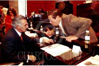 El diputado Rafael Rodríguez Barrera coordinador de los priístas en la Cámara de Diputados discute con Alejandro Zapata diputado del PAN, durante la sesión permanente en el salón verde. FOTO: Eunice Adorno/CUARTOSCURO.COM