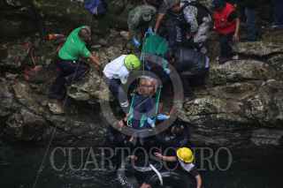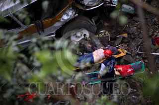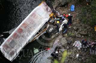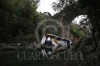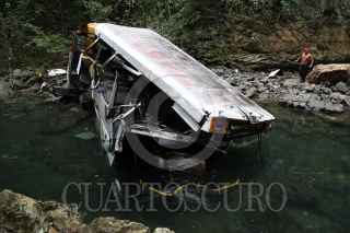ATOYAC, VERACRUZ., 10ENERO2016.- Al menos 20 personas fallecieron y 24 resultaron heridos de gravedad por el accidente de un camión que cayó 50 metros a un río, los pasajeros eran jugadores del equipo de fútbol Deportivo Camarón acompañados de familiares y amigos; hasta el momento por testimonios de algunos sobrevivientes el origen del percance fue una falla mecánica. FOTO: ILSE HUESCA /CUARTOSCURO.COM