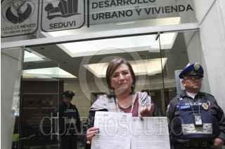 MÉXICO, D.F., 12ENERO2016.- Xóchitl Gálvez , delegada de Miguel Hidalgo, presentó una denuncia ante Seduvi para manifestar su descontento en torno a las construcciones irregulares en la delegación. FOTO: MARÍA JOSÉ MARTÍNEZ /CUARTOSCURO.COM