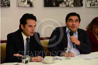MÉXICO, D.F., 12ENERO2016.- Los senadores del PRD Miguel Ángel Barbosa y Zoé Robledo, ofrecieron un desayuno a los representantes de los diferentes medios de comunicación para informar sobre su postura respecto a la pronta extradición de Joaquín "El Chapo" Guzmán y la situación interna del partido. FOTO: ISABEL MATEOS /CUARTOSCURO.COM