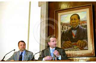 El canciller Jorge G. Castañeda y el encargado de la politica interna del país Santiago Creel Miranda, anunciaron en conferencia de prensa la excarcelación del General Francisco Gallardo Rodríguez. FOTO: Alberto Valdez/CUARTOSCURO.COM