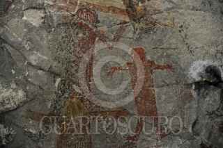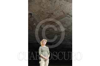 MULEGÉ, BAJA CALIFORNIA SUR, 13ENERO2016.- A 250 metros de altura sobre una afluente fértil del arroyo intermitente de San Baltasar se abre la gran boca pintada de la Cueva de San Borjitas: en su interior se halla una de las policromías más ricas de la tradición Gran Mural. Posiblemente sea uno de los sitios donde comenzó a desarrollarse ese estilo de pintura rupestre monumental en Baja California Sur, inscrito en la Lista de Patrimonio Mundial en diciembre de 1993. En la imagen, María de la Luz Gutiérrez, arqueóloga del Instituto Nacional de Antropología e Historia (INAH), quien ha registrado 120 motivos de grandes dimensiones plasmados en toda la cavidad pétrea. FOTO: INAH /CUARTOSCURO.COM