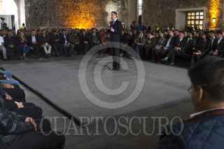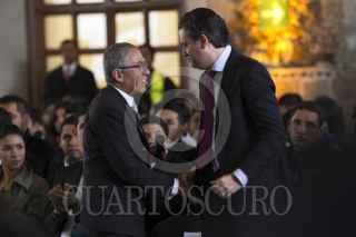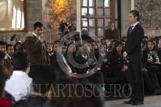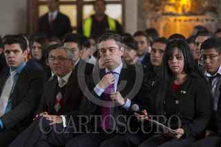 MÉXICO, D.F., 13ENERO2016.- Aurelio Nuño, secretario de Educación Pública, atiende a un estudiante invidente durante el encuentro con estudiantes de Institutos Tecnológicos y Politécnicos en la explanada central de la Biblioteca de México "José Vasconcelos". El titular de la SEP dió a conocer que para el 2016 aumentará 40 por ciento las becas para estudiantes de estas instituciones, pese a recortes en el presupuesto federal. FOTO: MOISÉS PABLO /CUARTOSCURO.COM