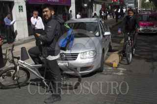 MÉXICO, D.F., 14ENERO2016.- Un ciclista se hace de palabras con una conductora que invadió la ciclovía en Paseo de la Reforma. FOTO: MOISÉS PABLO /CUARTOSCURO.COM