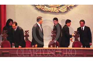 Amalia García y Jesús Ortega también estuvieron presentes durante la ceremonia de toma de protesta de Lázaro Cárdenas Batel. FOTO: Christian Palma/CUARTOSCURO.COM