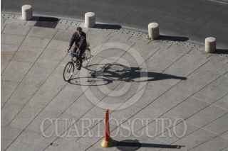 MÉXICO, D.F., 15ENERO2016.- Un ciclista cruza la Plaza de la República, esta tarde soleada en la ciudad de México. FOTO: ISAAC ESQUIVEL /CUARTOSCURO.COM