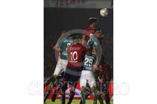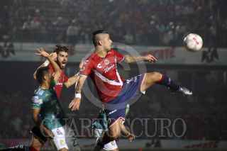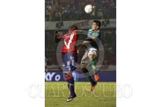 VERACRUZ, VERACRUZ, 15ENERO2016.- Joranda 2 del Torneo Clausura 2016 de la Liga MX en el estadio Luis Pirata Fuente, partido disputado entre Tiburones Rojos y León. Los locales sufrieron su primer derrota de 3-1 de la temprada. En la imagen Cristian Martínez de los tiburones disputa un balón con Efrain Velarde. FOTO: ILSE HUESCA/ CUARTOSCURO.COM
