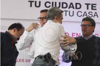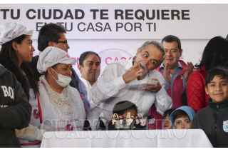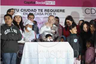 MÉXICO, D.F., 16ENERO2016.- MIguel Ángel Mancera, jefe de gobierno capitalino, acudió a la Jornada Tu Ciudad te Requiere en la Unidad Habitacional Tlatelolco, en donde estuvo acompañado por el delegado de la demarcación, Ricardo Monreal. Al término del evento partió un pastel de cumpleaños pues hoy celebra su natalicio. FOTO: MARÍA JOSÉ MARTÍNEZ /CUARTOSCURO.COM