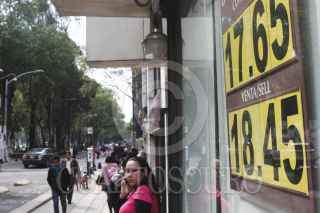MÉXICO, D.F., 19ENERO2016.- Cotización de dólar norteamericano en 18.50 pesos de venta y compra en 17.50 pesos en una sucursal de Banco del Bajío. FOTO: MOISÉS PABLO /CUARTOSCURO.COM