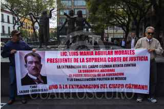MÉXICO, D.F., 19ENERO2016.- Dos personas protestaron frente a la Suprema corte de Justicia de la Nación pidiendo a el magistrado presidente de la Suprema Corte, Luis María Aguilar no extradite a Joaquín "El Chapo" Guzmán. FOTO: ENRIQUE ORDÓÑEZ /CUARTOSCURO.COM