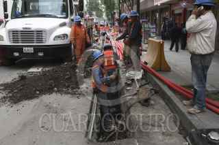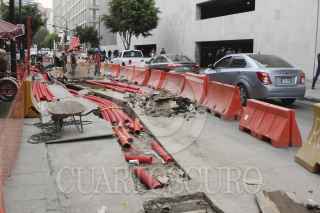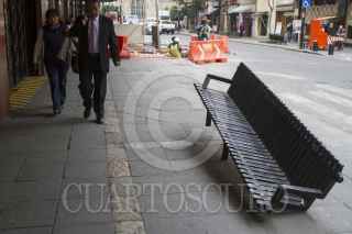 MÉXICO, D.F., 20ENERO2016.- Una banca permanece abandonada al paso de los peatones en la banqueta de la calle de Independencia, ésta fue retirada de su lugar por los trabajadores de la CFE que están llevando a cabo obras en el primer cuadro. FOTO: MOISÉS PABLO /CUARTOSCURO.COM