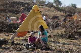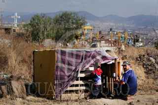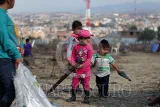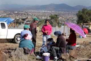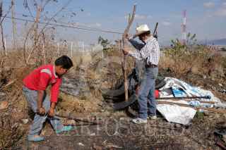 MORELIA, MICHOACÁN, 20ENERO2016.- Un pequeño grupo de niños ayuda a levantar una pequeña casa de madera en el predio llamado Quinceo, que se encuentra a las faldas del cerro del mismo nombre; clasificado cómo reserva natural. Se calcula que unas 60 familias invadieron el predio que se encontraba parcialmente habitado. El Movimiento Antorchista, se hizó presente con algunas 200 personas armados con palos y piedras. Hasta el momento la situación se mantiene en tensa calma. FOTO: ALAN ORTEGA /CUARTOSCURO.COM