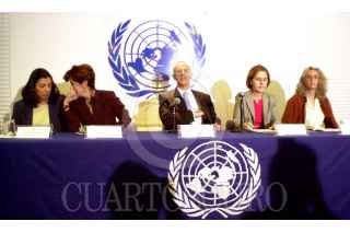 Durante la conferencia de la ONU por la celebración del Día Internacional de la Mujer, los participantes de la misma demandaron el esclarecimiento de los asesinatos de mujeres en Ciudad Juárez Chihuahua en México. FOTO: Victoria Valtierra/CUARTOSCURO.COM