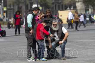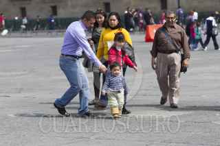 MÉXICO, D.F., 24ENERO2016.- Familias aprovecharon que el la plancha del zócalo no estaba ocupada por una pista, una carpa o algo por el estilo, para caminar sobre lo que es conocido como el corazón del país. FOTO: MOISÉS PABLO /CUARTOSCURO.COM