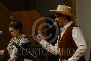 MÉXICO, D.F., 24ENERO2016.- Los actores Laura Zapata y Arturo Rosales rindieron homenaje al escritor mexicano, Juan Rulfo, tras 30 años de su fallecimiento con la lectura de sus obras. Con ademanes y cambios de voz los actores dieron vida a los personajes que mantuvieron entretenidos a los asistentes a la Sala Manuel M. Ponce del Palacio de Bellas Artes. FOTO: GALO CAÑAS /CUARTOSCURO.COM