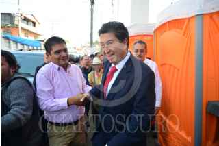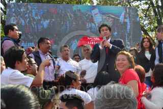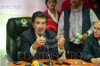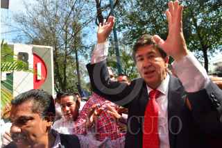 XALAPA, VERACRUZ, 25ENERO2016.- Entre empujones por militantes priistas el senador con licencia Héctor Yunes Landa acompañado de José Yunes Zorrilla, se registró como aspirante único por el PRI a gobernador por el estado de Veracruz, la ceremonia se realizó en la sede local tricolor. FOTO: ALBERTO ROA /CUARTOSCURO.COM
