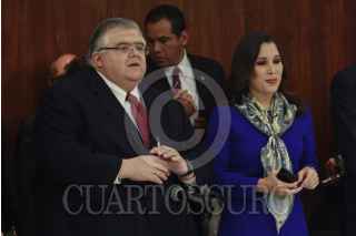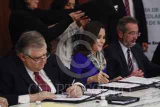 MÉXICO, D.F., 26ENERO2016.- Agustin Carstens y Ximena Puente, titulares del Banco de México y el Instituto Nacional de Transparencia y Acceso a la Información respectivamente firmaron un convenio de colaboración para fortalecer la cultura a la transparencia y rendición de cuentas. FOTO: ISABEL MATEOS /CUARTOSCURO.COM