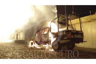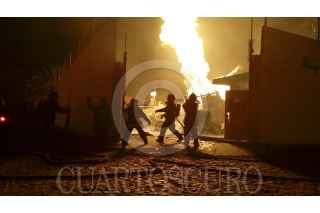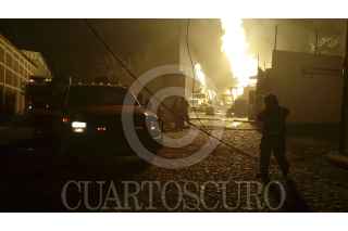 SAN JUAN DEL RÍO, QUERÉTARO, 26ENERO2016.- Cuatro pipas de gas que se encontraban dentro de un taller mecánico estallaron y provocaron un incendio de grandes dimensiones en la comunidad del Barrio de la Cruz. Evacuaron al menos a 200 personas que se refugiaron en la zona cerríl. Tres bomberos resultaron con quemaduras de segundo grado y 6 casas fueron afectadas por el fuego. Una patrulla de la policía municipal resultó calcinada por el fuego y dos más con daños por choque luego de la explosión. FOTO: EDUARDO TREJO /CUARTOSCURO.COM
