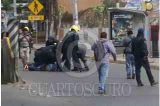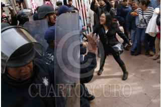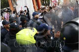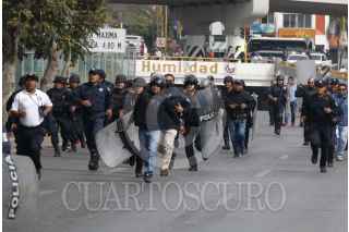 OAXACA, OAXACA, 26ENERO2016.- Integrantes del Sindicato de Trabajadores y Empleados de la Universidad Autónoma Benito Juárez de Oaxaca (Steuabjo) realizaron un paro de doce horas y bloquearon la avenida Universidad para exigir respuesta a su pliego petitorio. Sin embargo elementos de la Secretaría de Seguridad Pública (SSP) desalojaron a los manifestantes quienes habían retenido más de 10 unidades del transporte público, durante el operativo hubo tres detenciones, además los uniformados hicieron uso de gas lacrimógeno para dispersar a los manifestantes. FOTO: ARTURO PÉREZ ALFONSO /CUARTOSCURO.COM