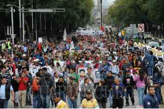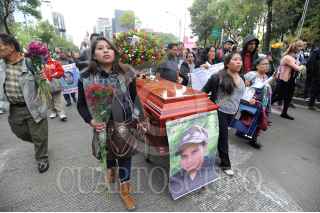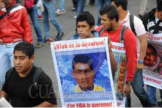 MÉXICO, D.F., 26ENERO2016.- Padres de los 43 normalistas desaparecidos en Iguala y quienes eran estudiantes de la escuela normal Isidro Burgos en Ayotzinapa marcharon del Ángel de la Independencia para conmemorar un mes más de tener noticia alguna del paradero de los jóvenes, hace un par de meses el Jefe del Ejecutivo se comprometió en darle prioridad a las investigaciones, sin embargo no hay información concreta por parte de la PGR. Amigos de Julio César Mondragón quien fue desollado en los hechos violentos del 26 de septiembre de 2014, llevaron un féretro frente a las instalaciones de la procuraduría para exigir su cuerpo, que fue exhumado el día 4 de noviembre de 2015. FOTO: ARMANDO MONROY /CUARTOSCURO.COM