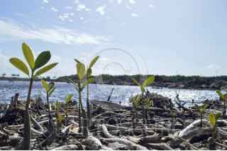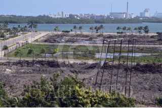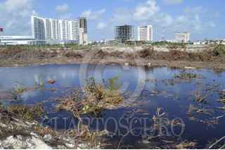 CANCÚN, QUINTANA ROO, 27ENERO2016.- El proyecto de la Basílica de Santa María del Mar está bloqueado, por lo que la Iglesia Católica seguirá en espera hasta que no se destrabe la situación jurídica- ambiental del Malecón Tajamar, señaló el Obispo de la Prelatura Cancún-Chetumal, Pedro Pablo Elizondo Cárdenas. En la imagen, el toldo en donde se pretende realizar la construcción, al mismo tiempo que se aprecia la vida del manglar que trata de florecer de nuevo. FOTO: ELIZABETH RUIZ /CUARTOSCURO.COM