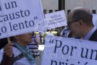 MÉXICO, D.F., 27ENERO2016.- Integrantes de la organización "Madres y hermanas de la Plaza Luis Pasteur", que congrega a familiares de personas privadas de la libertad en centros federales y locales se manifestaron en la inmediaciones del Tribunal Superior de Justicia del DF para exigir que el proceso legislativo de la Ley Nacional de Ejecución Penal (actualmente en el Senado) se coloque del lado de los derechos humanos y no en su contra. FOTO: MOISÉS PABLO /CUARTOSCURO.COM