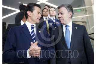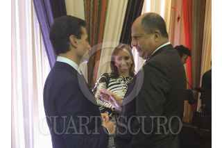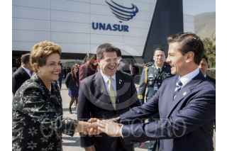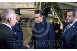 QUITO, ECUADOR, 27ENERO2016.- El Presidente Enrique Peña Nieto fue recibido por José Serrano Salgado, Ministro de Seguridad de la República del Ecuador; el Embajador Fabián Valdivieso, Director de la Comisión de Protocolo; y Jaime Manuel del Arenal, Embajador de México en Ecuador, a su llegada a esta capital, en donde participará en la Cuarta Cumbre de Jefes de Estado y de Gobierno de la Comunidad de Estados Latinoamericanos y del Caribe (CELAC). FOTO: PRESIDENCIA /CUARTOSCURO.COM