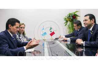 QUITO, ECUADOR, 27ENERO2016.- El presidente de México, Enrique Peña Nieto sostuvo una reunión con su homólogo de la República de Guatemala, Jimmy Morales, en el marco de sus actividades en la Cuarta Cumbre de Jefes de Estado y de Gobierno de la CELAC. Ambos Mandatarios acordaron continuar con las estrategias para consolidar una frontera próspera y segura para el desarrollo de la región centroamericana. FOTO: PRESIDENCIA /CUARTOSCURO.COM